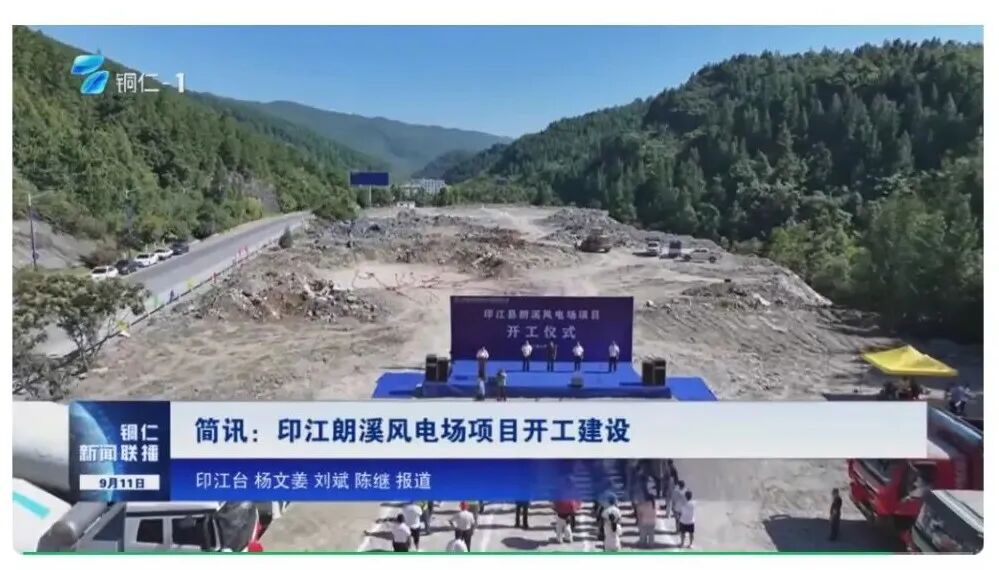 ▲9月11日,《铜仁新闻联播》报道 印江朗溪风电场项目开工建设