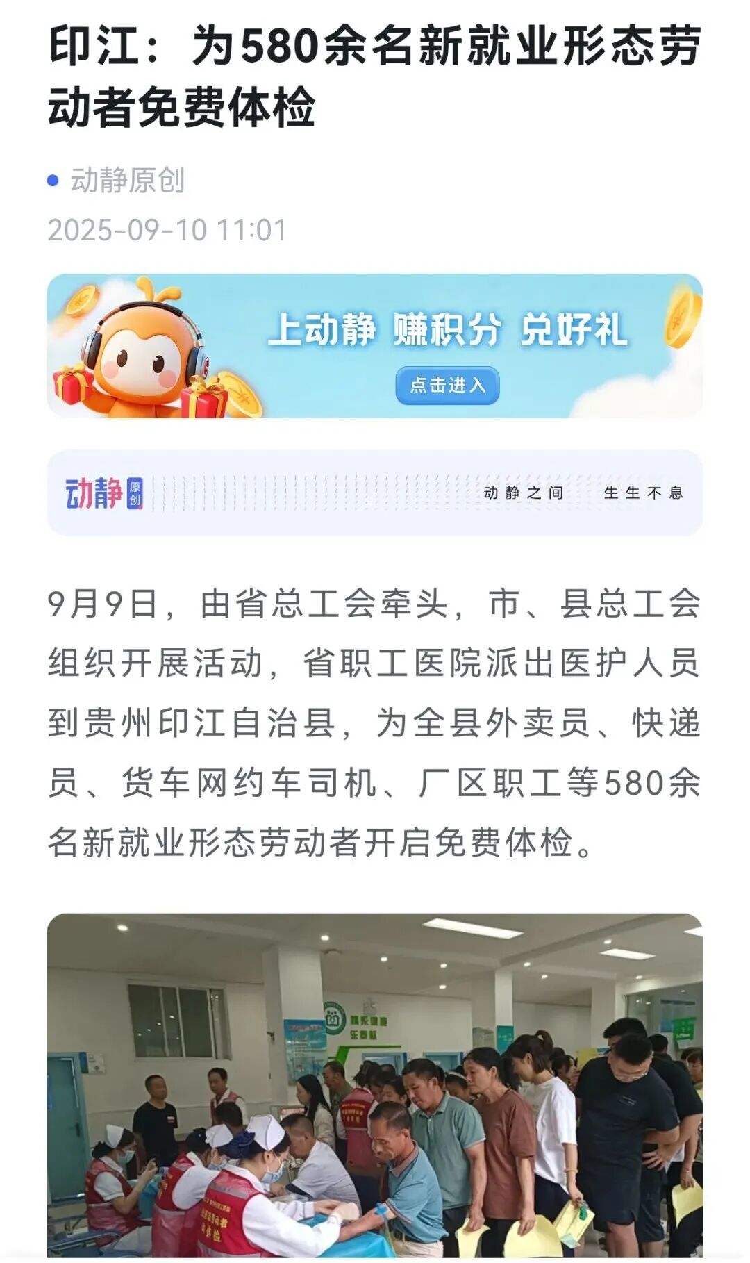 ▲9月10日,动静贵州报道 印江:为580余名新就业形态劳动者免费体检