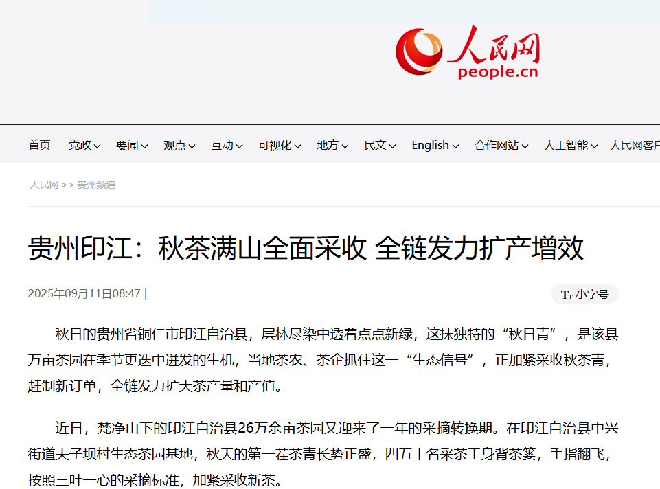 ▲9月11日, 贵州印江:秋茶满山全面采收 全链发力扩产增效