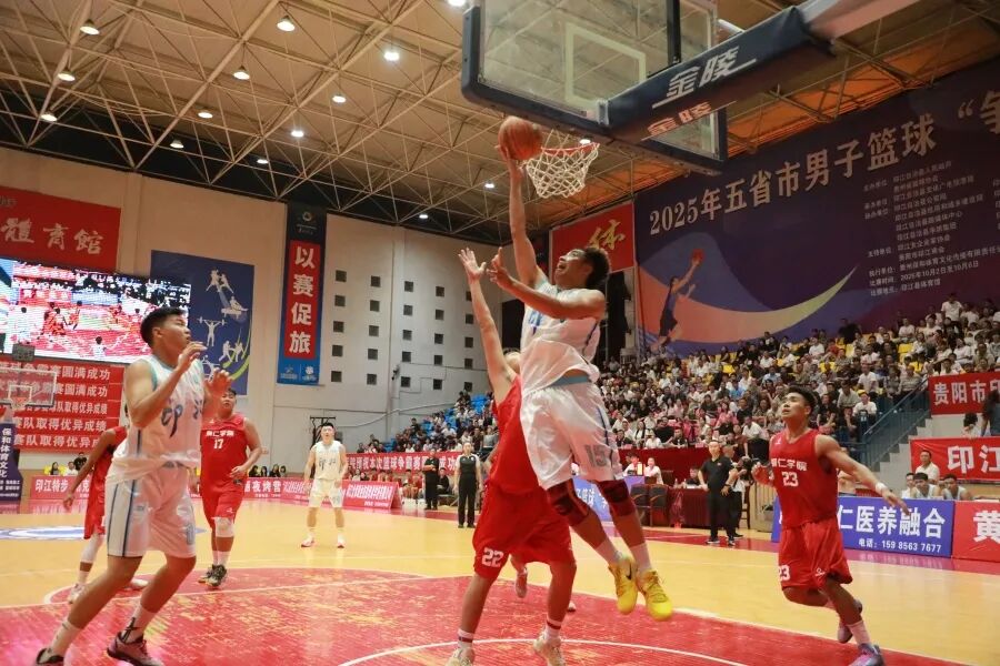10月2日,2025年五省市男子篮球争霸赛在印江体育馆激情开赛。来自贵州、湖南、湖北等省市的八支劲旅齐聚印江,共同开启这场充满激情与活力的篮球盛宴。