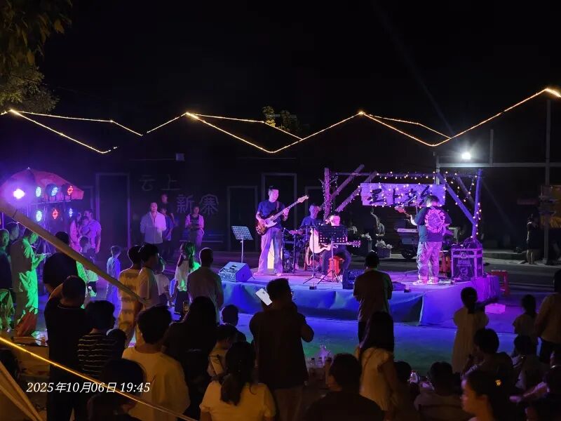 火光照亮的舞台上,民谣音乐会接续开演。本土歌手怀抱吉他,将梵净山的晨雾、团山茶园的清香、农家生活的烟火气融入旋律,一曲曲质朴悠扬的原创民谣缓缓流淌。游客们或席地而坐,或轻声合唱,山水为幕、月光为灯,构成一幅温馨动人的团圆画卷。