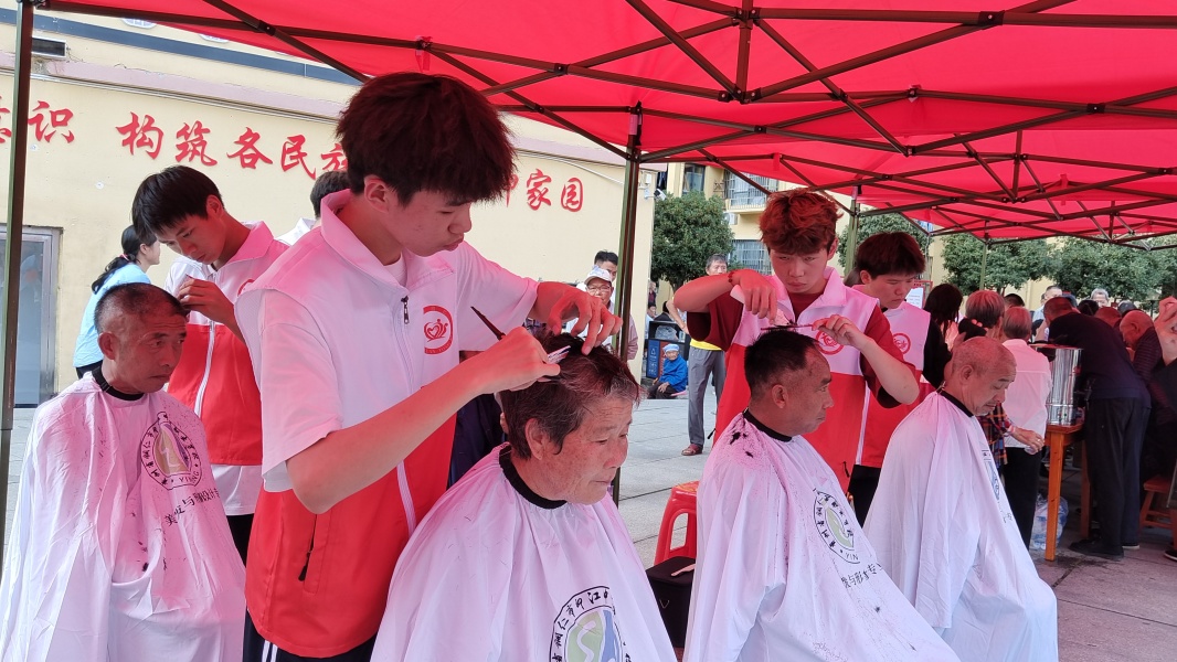 志愿服务专区里,“健康+便民”双线发力。县人民医院医护人员为居民免费测血压、解答健康疑问,针对高血压、关节炎等常见问题给出调理建议,还发放常用药品。志愿理发师团队仔细询问需求,剪刀翻飞间,清爽发型让居民精神焕发。