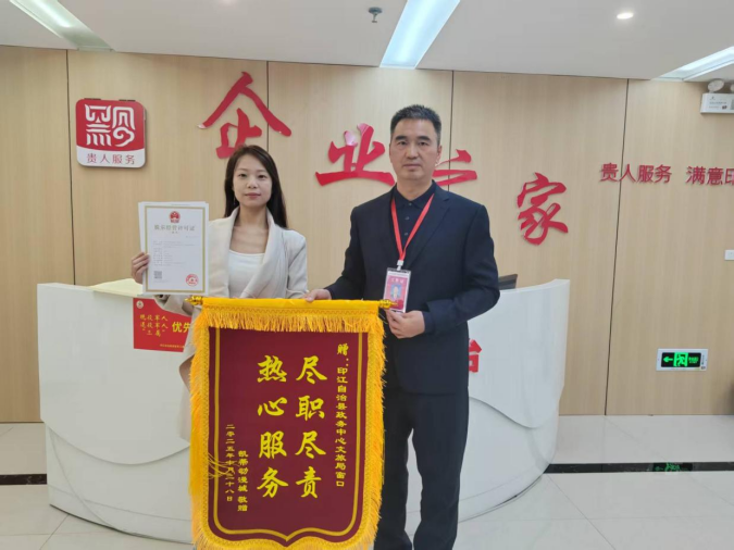 印江文旅局窗口首席代表表示:此次审批启动容缺受理机制,提高办件效率,并全程跟踪服务,解答企业疑问,让企业感受到政务服务的温度与速度,这面锦旗不仅是对窗口工作的肯定,更是对全县政务服务工作的激励。