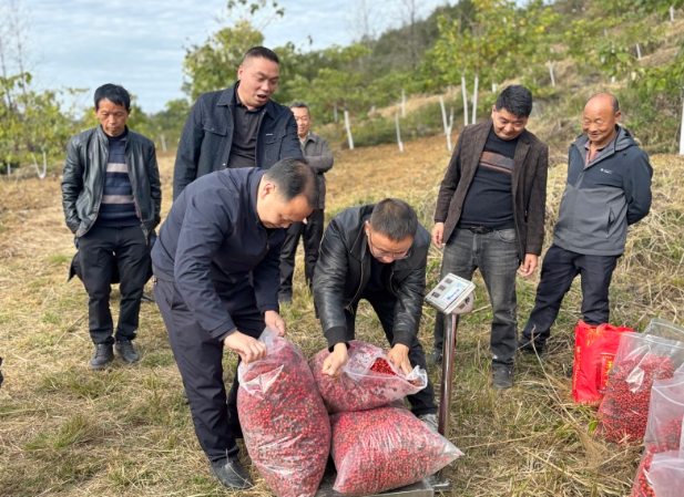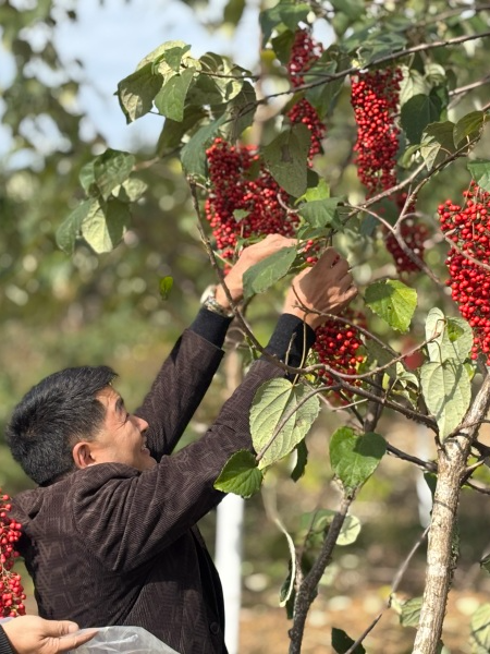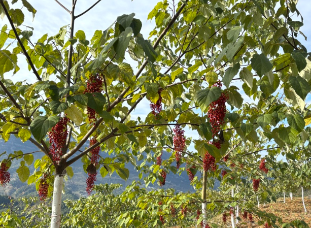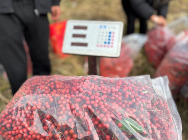 这份“踏实感”,源于当地对山桐子产业的长远规划和坚实保障。天堂镇农业农村综合服务中心的林业工作负责人任廷强介绍,自2023年以来,天堂立足山地资源优势,全力推进山桐子产业发展,目前种植总面积已达14378 亩,仅百户村就有300亩。“今年是山桐子首次挂果,像今天这个收购点的挂果率大概在10%。待进入丰产期后,预计亩产能达到 4000 斤,按当前收购价计算,将为农户带来十分可观的收入。” 任廷强话语间满是期待。