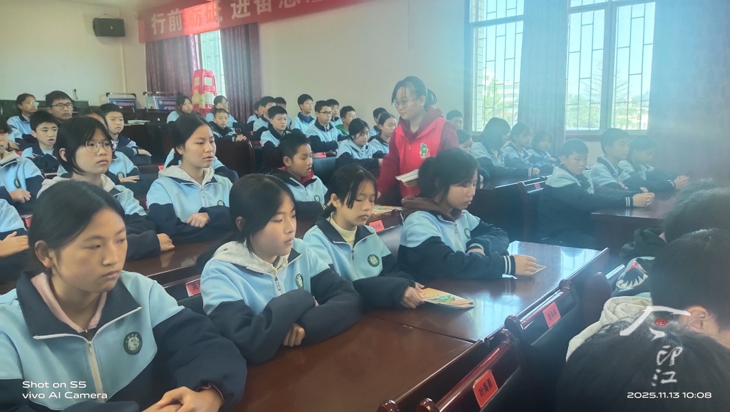 学校作为未成年人保护主阵地,天堂镇着力构建“教育+实践+防护”立体化法治教育体系,全镇中小学均配备法治副校长。今年以来累计开展“送法进校园”活动3场次,通过国旗下讲话、主题班会、法治讲堂等形式,将法律知识融入日常教育场景。天堂中学法治副校长严振中采用“案例教学法”,结合校园欺凌真实事件,开展以案释法与互动问答,引导学生树立“遇事找法、维权依法”的法治意识——学生小任感慨:“现在我知道,面对欺凌要用法律武器保护自己!”