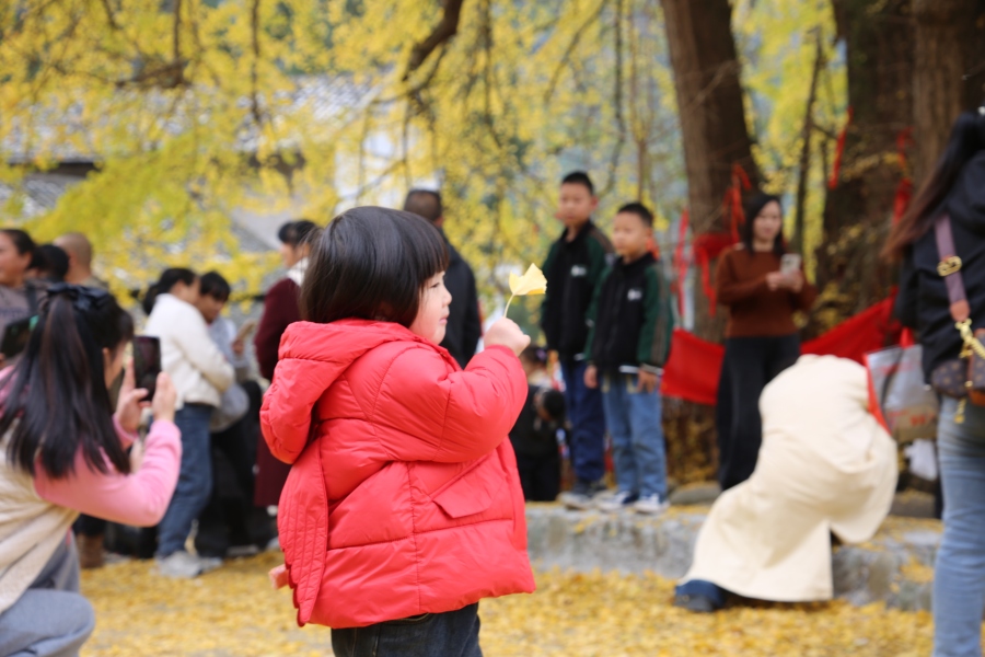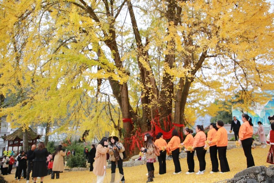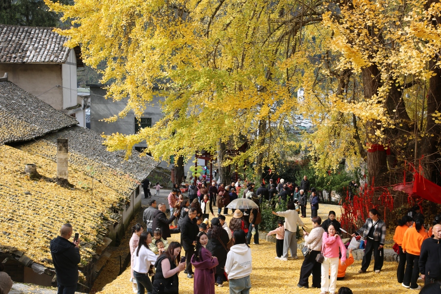 据凤仪村党支部书记吴廷新介绍,每年银杏叶黄时节,每天都会吸引众多游客前来拍照打卡、直播记录,周末游客达到了5000人以上。