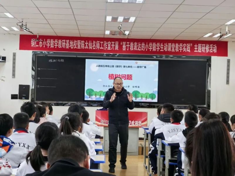 近日,印江实验小学陈太仙市级名师工作室热闹非凡,一场精彩的教研活动在此展开。任明海、牛飞、王旭彬三位一线教师以人教版五年级上册数学广角“植树问题”为教学内容,结合“教表达”理念设计课堂进行授课。