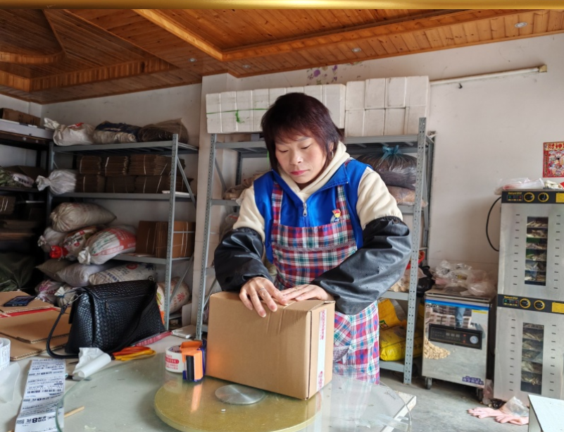 2021年10月,作为乡村致富带头人,罗会琴参加县里组织的培训,前往遵义取经。培训学校门口,电商老板娘忙碌打包发货,将当地农特产品销往全国的场景,让她尤为触动。