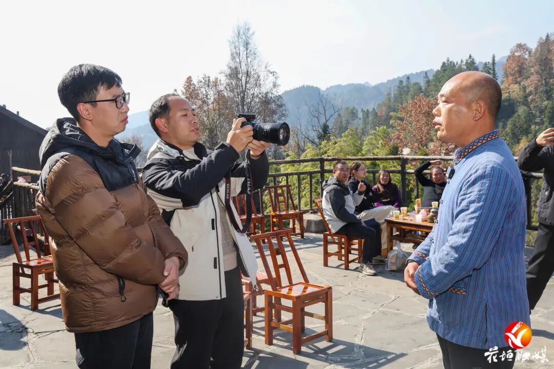 初冬时节,武陵山腹地晨雾似纱,将十八洞村晕染成一幅灵动的水墨画卷。12月6日,武陵山区域媒体联盟各成员单位代表齐聚于此,共同启动2025年度集中采访交流活动。在十八洞精准扶贫主题陈列参观学习(本组图片均由宋显金拍摄)武陵山区域媒体联盟自2023年10月由秀山、松桃、酉阳、花垣四家融媒体中心共同发起成立以来,始终秉持“资源共享、栏目共办、平台共建、合作共赢”原则。经过两年发展,联盟成员已拓展至秀山县、酉阳县、花垣县、松桃县、印江县、碧江区、沿河县及新加入的保靖县共八家融媒体中心,成为武陵山片区具有重要影响力的新闻协作与传播平台。活动伊始,联盟单位代表共同回顾了联盟两年来的工作历程与成果。随后,现场举行了简朴而庄重的轮值单位交接仪式,标志着新一年度联盟主办职责的正式传递。随后,联盟成员单位审议了下一阶段协作计划与联盟章程,并欢迎保靖县融媒体中心作为新成员正式加入,联盟力量得到进一步充实,区域协同效能持续增强。联盟成员单位代表围绕深化联盟作用、创新合作机制、提升内容生产能力等议题展开务实交流,并就进一步推动跨区域媒体融合、加强文化传播交流、合力展现武陵山片区高质量发展的生动实践与丰硕成果凝聚了共识。集中交流结束后,全体人员深入十八洞村开展实地采访。大家先后走访精准扶贫主题陈列、梨子寨、“大姐”石拔三家,以及十八洞村苗绣乡村振兴基地和“精准坪”广场等点位,通过历史图片、实物展示与现场讲述,生动记录乡村振兴的实践足迹与发展历程。部分记者围绕冬季旅游主题进行专题采访。在梨子寨,联盟成员单位记者与游客深入交流,了解他们对十八洞村特色景观与文化体验的感受;在“阿雅农家乐”,记者采访了经营者杨正邦,听他讲述乡村旅游为生活带来的切实变化与增收故事。通过多视角、沉浸式的走访,成员们积累了丰富的一手素材,为后续讲好区域协同发展的“武陵山故事”注入了鲜活内容。