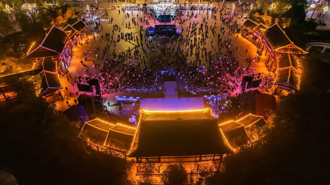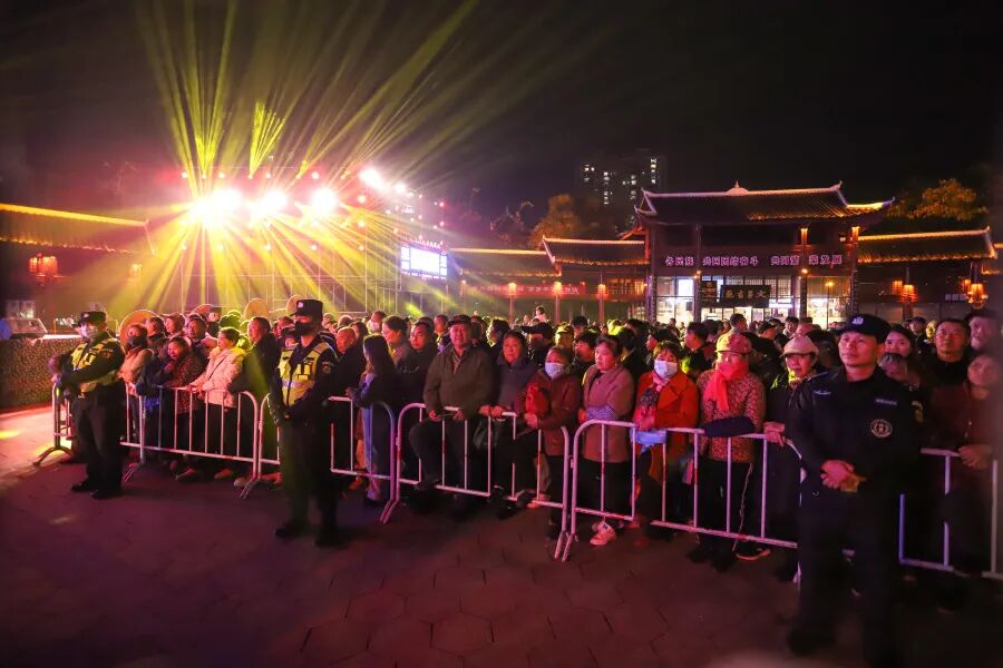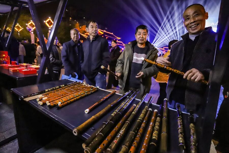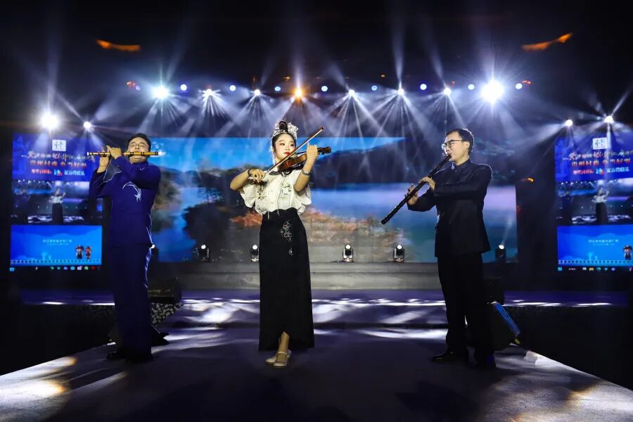 玉屏侗族自治县,箫笛为魂、侗寨为根、民俗为韵。这里的箫笛不仅是国家级非物质文化遗产,更成了远销海内外的特色产业,一根竹管经匠人巧手雕琢,便能奏响穿越千年的天籁之音;印江土家族苗族自治县,聚武陵之秀、承文脉之盛,书法艺术源远流长,土家族“过赶年”的民俗、苗族印染的非遗技艺,在岁月长河中沉淀为独有的文化标识。今夜,这两座浸润着少数民族文化基因的小城跨越山水相遇,一场“箫音墨韵·同心同行”的文化之约,在文昌广场正式拉开帷幕。