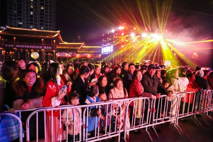 四轮对决落幕,夜色已深,但文昌广场的热度丝毫未减。当灯光再次照亮舞台,印江与玉屏的演员们携手登台,掌声与欢呼声经久不息。从《魂系山河·过赶年》的家国情怀到《染韵》的非遗匠心,从《小城有伙新市民》的城乡烟火到《山歌醉在田坎上》的田园诗意,每一个节目都藏着印江少数民族的文化基因与生活热爱;也感受了玉屏“箫笛+民俗+侗寨”的别样风情——从《金色侗乡》的丰收欢歌到《劳作的银铃》的民俗活力,从《美丽的神话》的箫笛雅韵到《等你来侗乡》的热情邀约,每一段表演都彰显着侗族文化的灵动与厚重。