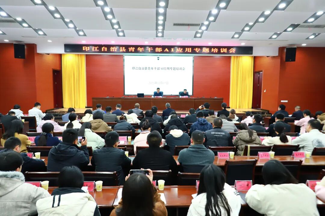 12月17日,印江自治县青年干部AI应用专题培训在县博物馆举行,县领导陈睿主持,田学周出席。