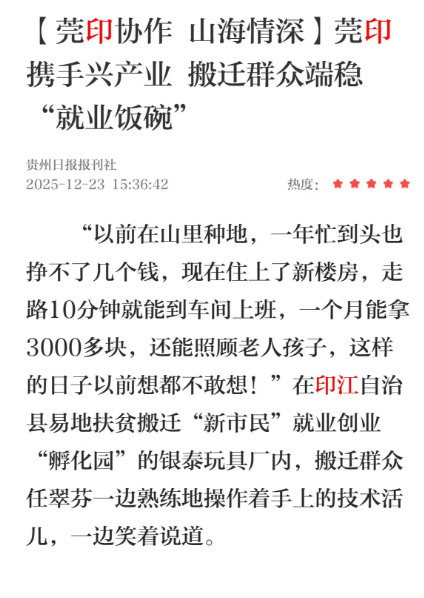 ▲12月23日,天眼新闻报道:【莞印协作 山海情深】莞印携手兴产业 搬迁群众端稳“就业饭碗”