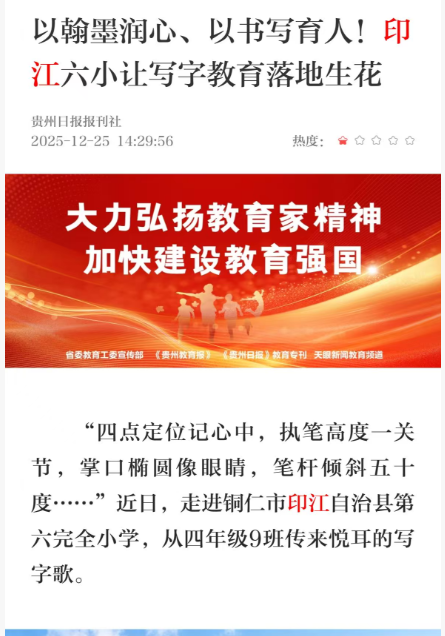 ▲12月25日,天眼新闻报道: 翰墨润心、以书写育人!印江六小让写字教育落地生花