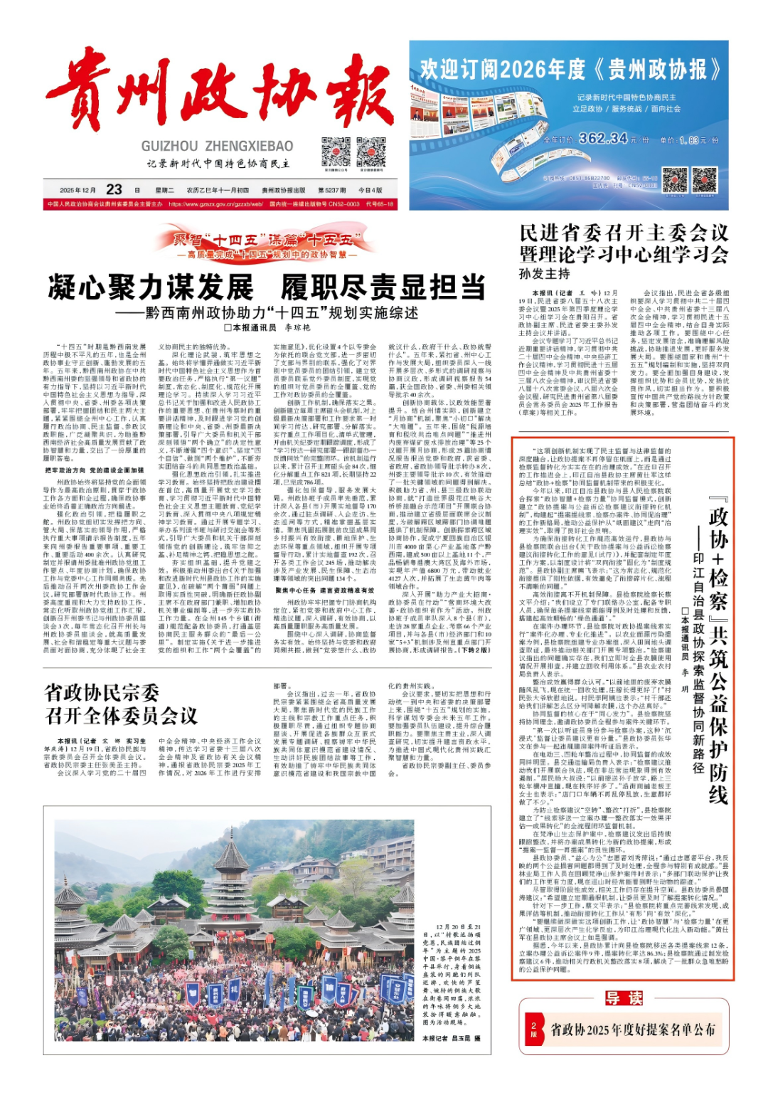 ▲12月23日,《贵州政协报》报道:“政协+检察”共筑公益保护防线——印江自治县政协探索监督协同新路径