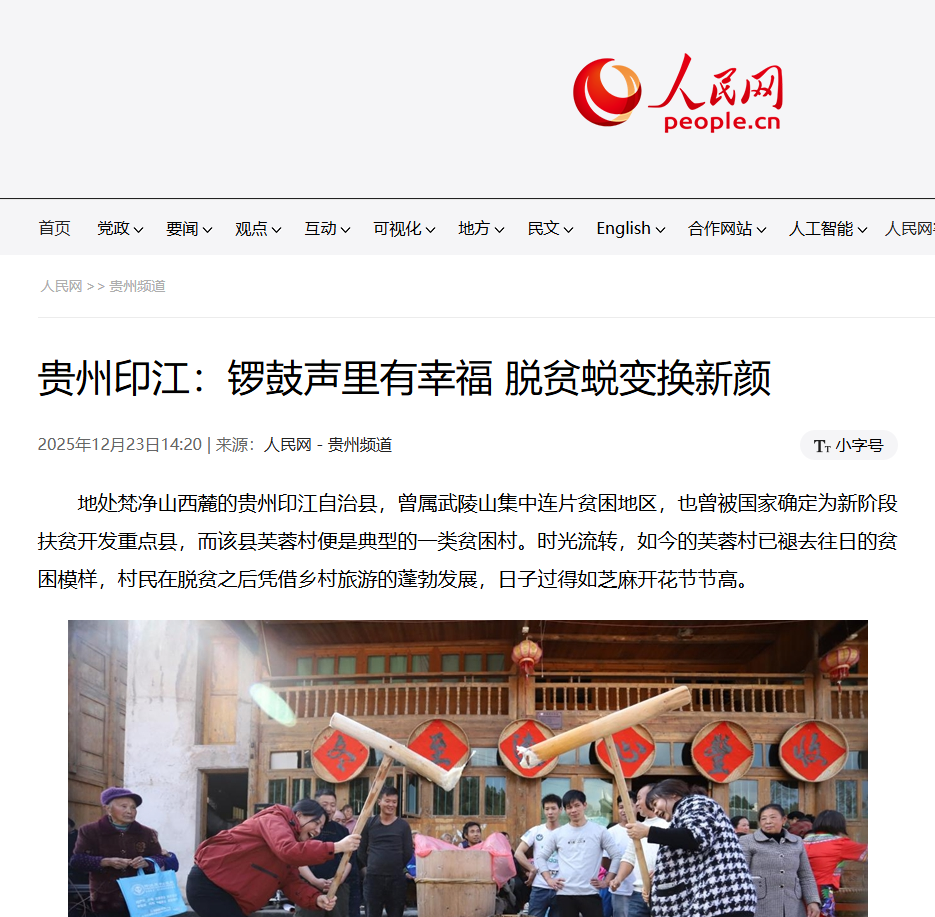 ▲12月23日,人民网贵州频道报道:贵州印江:锣鼓声里有幸福 脱贫蜕变换新颜