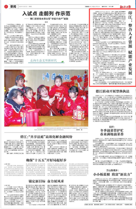 ▲12月25日,《铜仁日报》报道: 印江:整合人才资源 赋能产业发展
