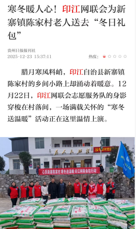 ▲12月23日,天眼新闻报道:寒冬暖人心!印江网联会为新寨镇陈家村老人送去“冬日礼包”