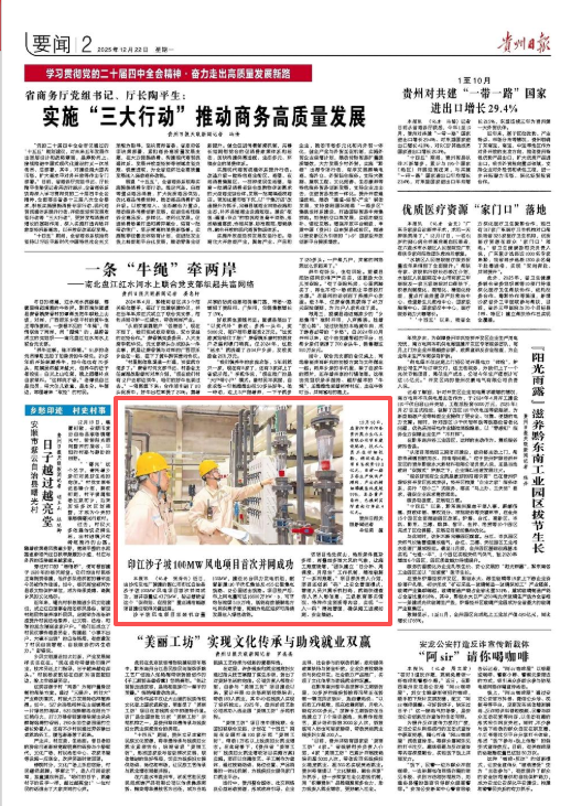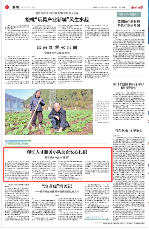 ▲12月23日,《贵州日报》报道:印江人才服务小队助企安心扎根精准服务为企业“撑腰”