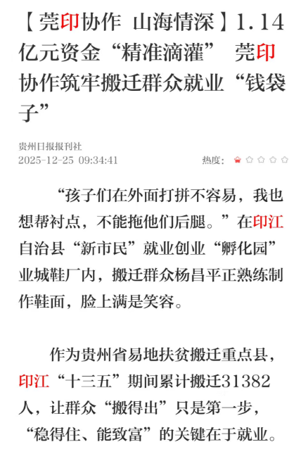 ▲12月25日,天眼新闻报道: 【莞印协作 山海情深】1.14亿元资金“精准滴灌”莞印协作筑牢搬迁群众就业“钱袋子”