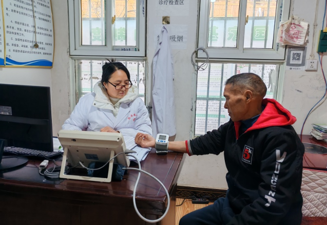 上午11点半,处理完门诊工作后,田爱艳背上装有血压计、血糖仪、健康档案的诊疗包,穿梭在村寨的田间小道,为高龄老人、慢性病患者上门随访。目前,她已为全村112名高血压患者、2名糖尿病患者建立动态健康档案,实现慢性病规范管理全覆盖。
