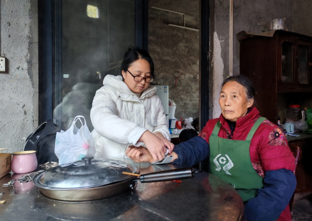 “今天血糖3.8 mmol/L,数值正常,但血压166/94 mmHg,还有点高,平时盐要吃得清淡些,过两天记得来卫生室复查,降压药一定要按时吃。”在打铁坳村瓦窑堡组村民陈世霞家中,田爱艳记录着健康数据,不忘耐心叮嘱注意事项。今年70岁的陈世霞,2017年因高血压引发脑梗塞,出院后便成了家庭医生的重点关注对象。“卫生室就在家门口,医生定期上门量血压、调用药,我的身体才能这么平稳。”陈世霞笑着说道。